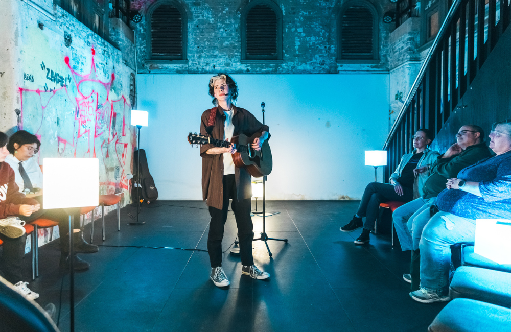 creator and performer emmett aster’s skill with words – spoken and sung with delicate accompanying guitar – is the foundation of this performance, and he voiced the connected stories with powerful vulnerability, inviting us to see ourselves with honesty and compassion.